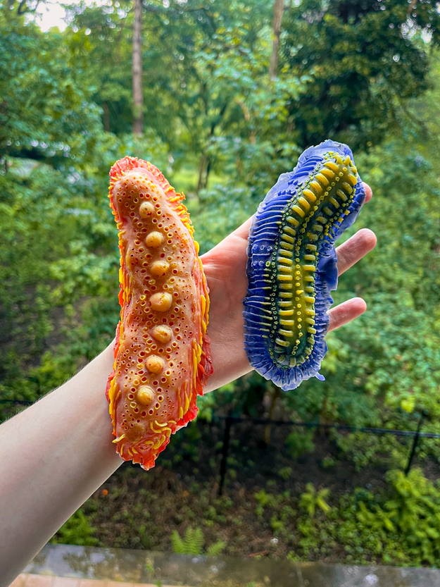 Inspired by the speculative sea cucumbers in my installation "Some breathe through their butts", which was at the time on view at Mediamatic, this workshop taught particpants how to cast latex in the shape of their own imaginary cucumber species. The final results were added to the walls surrounding the doors to the installation.