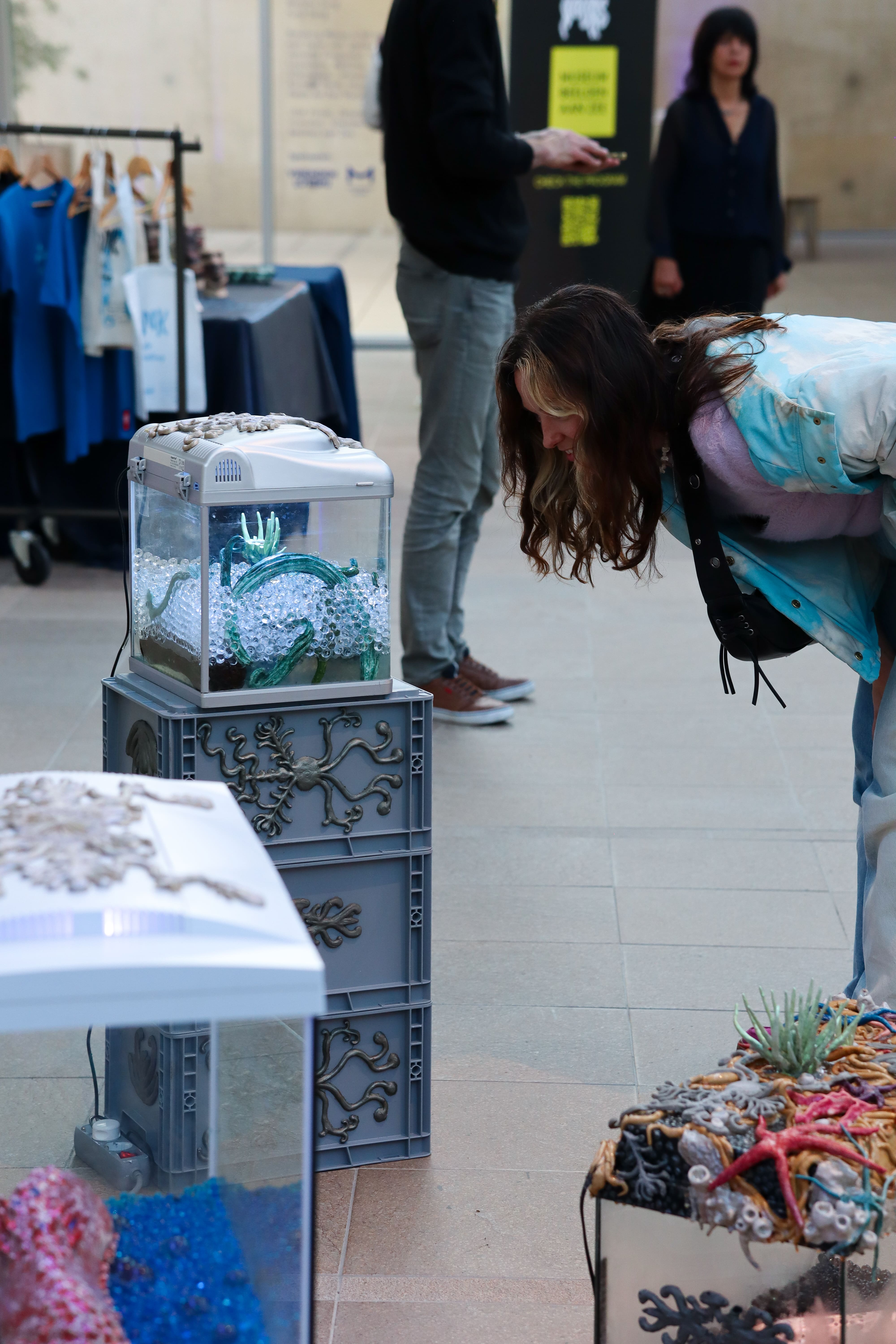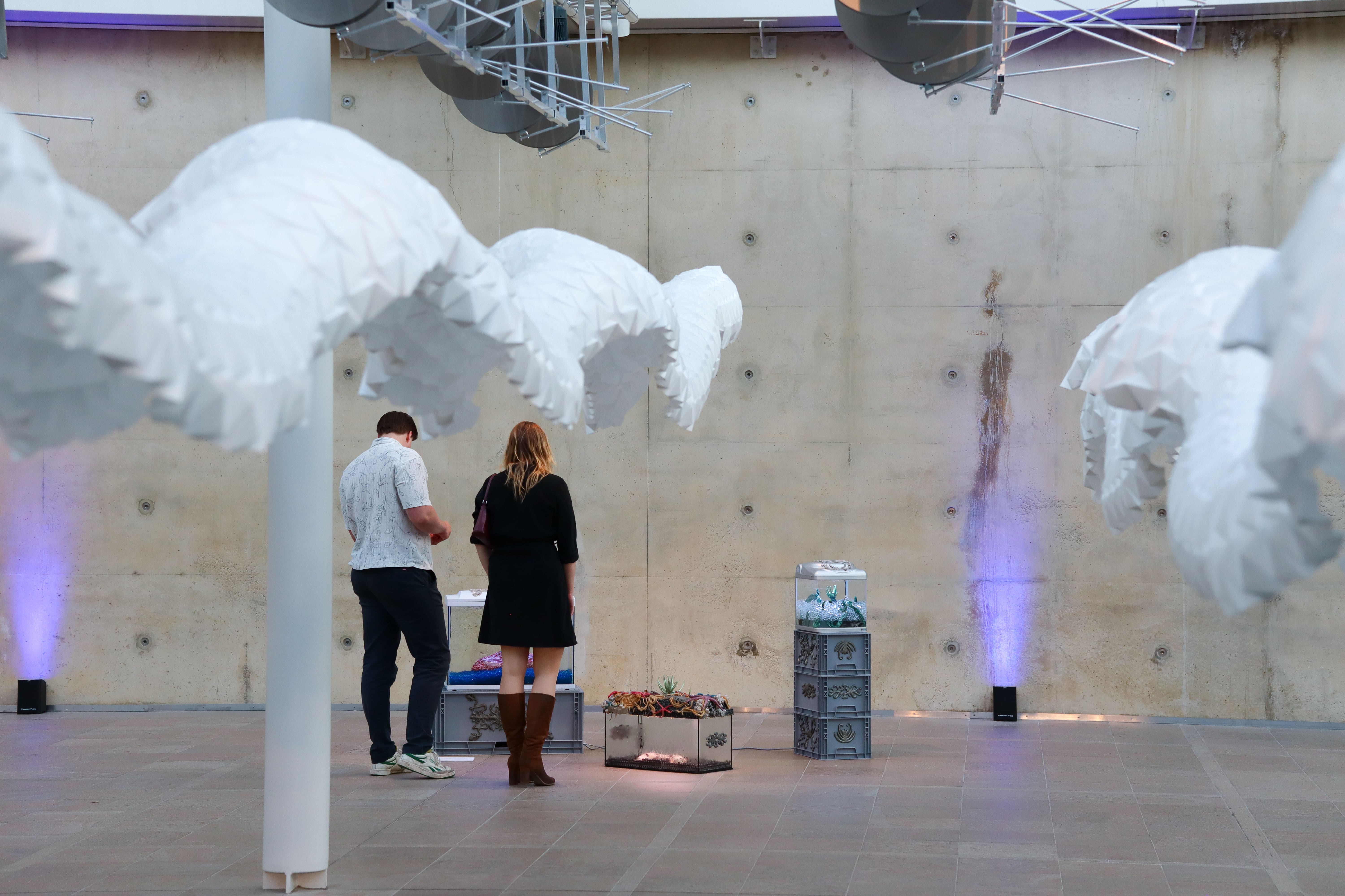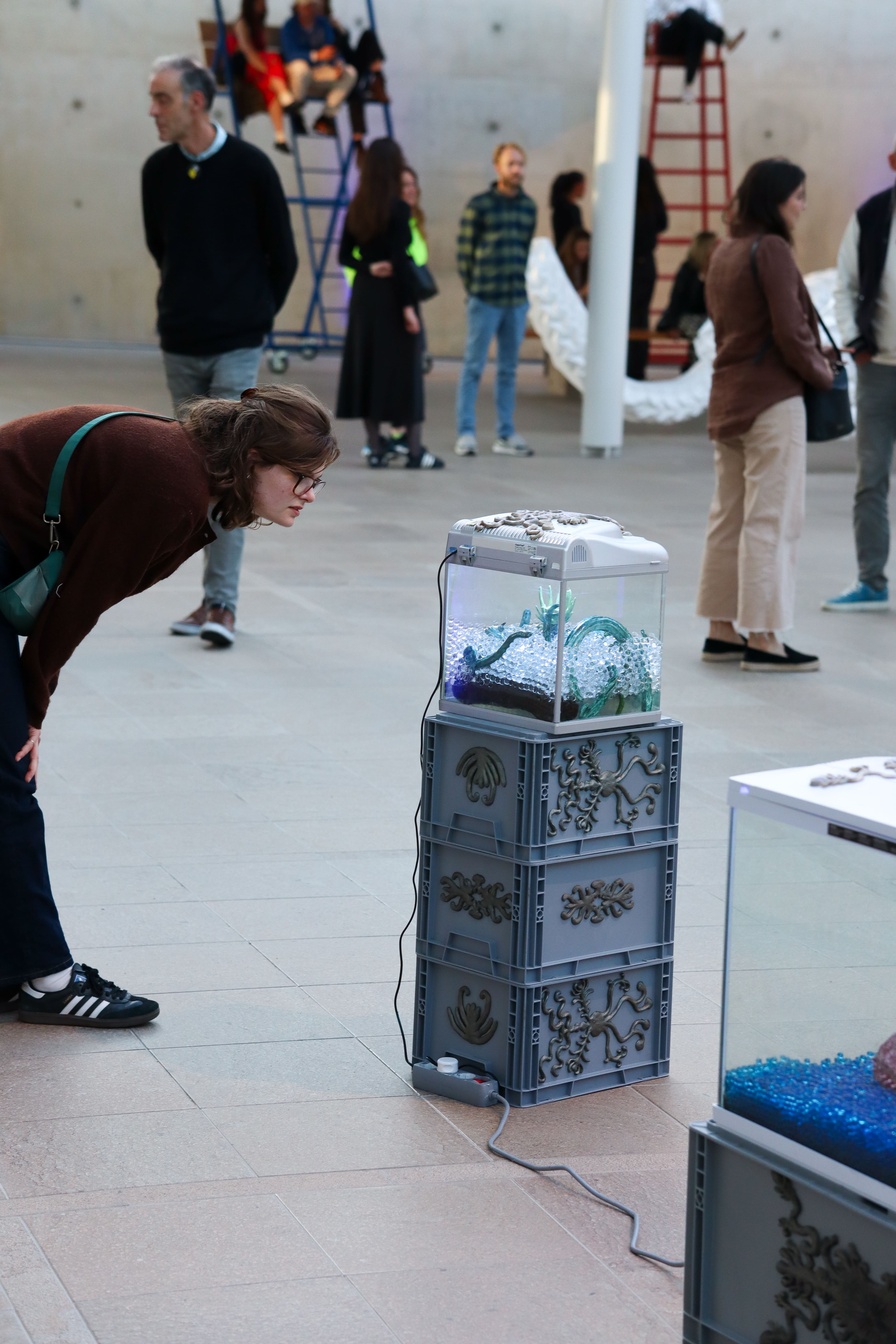 A vivarium is a container that has been adapted and prepared for keeping animals under semi-natural conditions for observation or study. In these particular vivaria, you get a glimpse into the speculative future of mutated sea cucumbers, where they have been bred to protect our oceans.